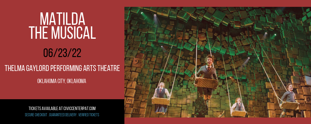 Booking access for Matilda – The Musical has proved tricky in the past, they sell out quickly! But we have them right at your fingertips! This massive night in theatres this summer, 2022 has been highly awaited, but the wait is over! Down at the epic, Thelma Gaylord Performing Arts Theatre, Oklahoma , Oklahoma City, simply best theatre for such a huge event like Matilda – The Musical. Those iconic tunes and dances speak for themselves so hurry along to the Thelma Gaylord Performing Arts Theatre on Thursday 23rd June 2022, you had better secure your entry to the evening first! June is going to be a month to remember! follow 'get tickets' right away!