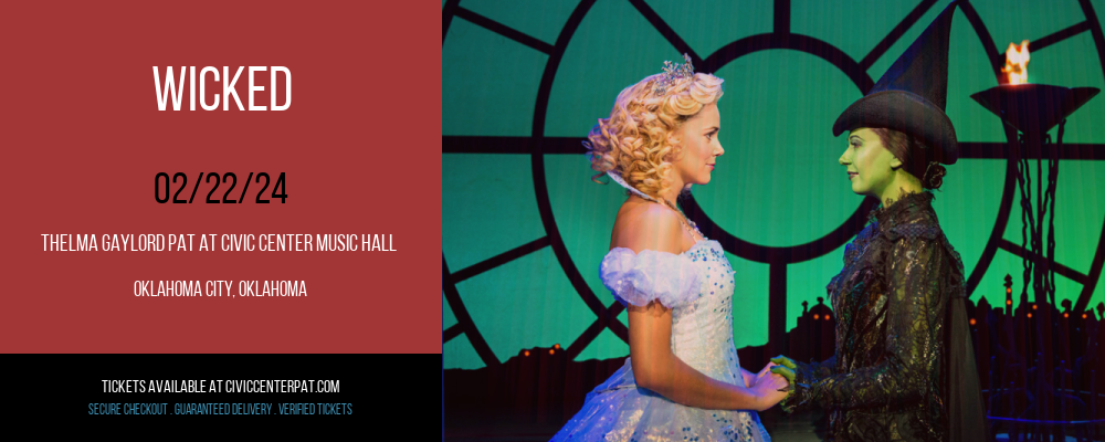 WICKED fans are in great anticipation of the winter, 2024 US tour, this famous musical, the story of two hugely different witches and the parallel of the classic 1900 novel 'The wonderful wizard of oz'. WICKED is set to give you with an excellent Thursday night of theatrical genius and catchy hits this February, you'll leave keen to tell everyone you know how WICKED is the ultimate musical on stage! Head to Thelma Gaylord PAT At Civic Center Music Hall , Oklahoma, Oklahoma City on Thursday 22nd February 2024...You should surprise the kids? Simply secure your tickets now, follow 'get tickets' this instant!
